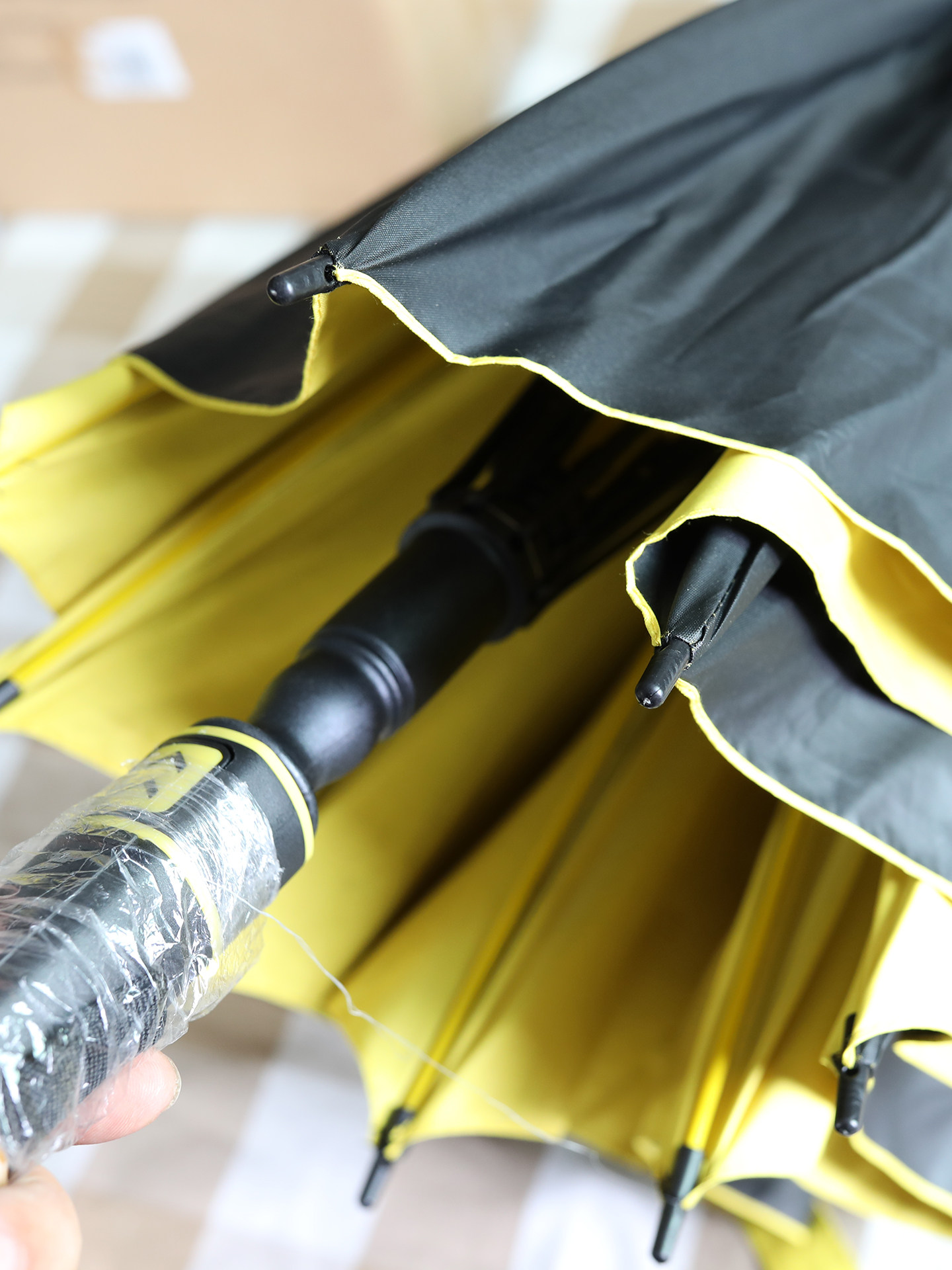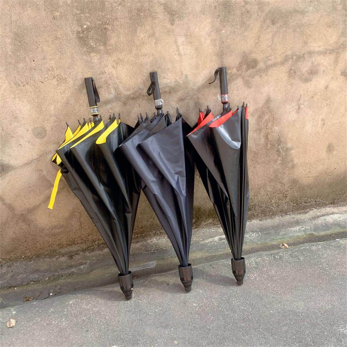 本款家用大號加固加厚長柄傘,提供黑色、黃色、紅色三種內部顏色選擇(請注意,本批次產品中未包含紅色選項)。傘面直徑約為120厘米,收納后的長度約為97厘米,相較于常規傘型約100厘米的尺寸,本產品大出20%,堪稱超大傘面設計,顯著提升了遮雨面積。傘架結構穩固,中棒采用加固鋼材質,足以抵御強風暴雨,確保了產品的耐用性。