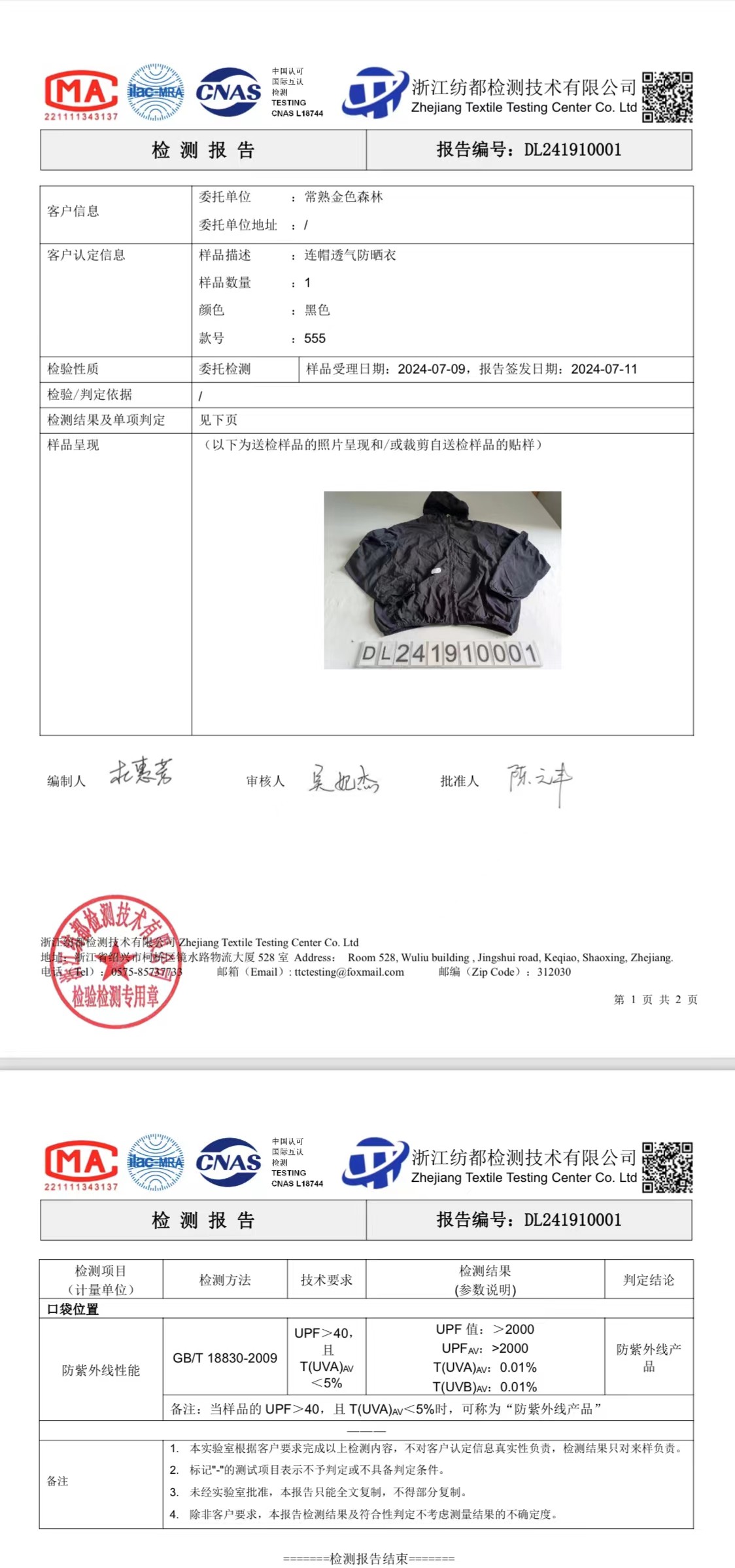 UPF值>2000,比50+更牛,附上質檢報告!