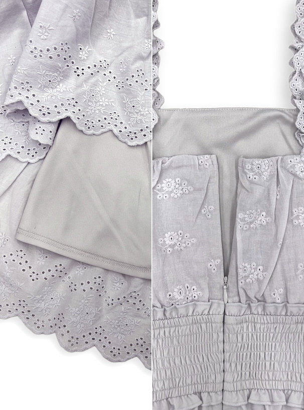 上身頃:コットン100% スカート部分:ポリエステル80% コットン20% 裏地:ポリエステル100% レース部分:コットン100%