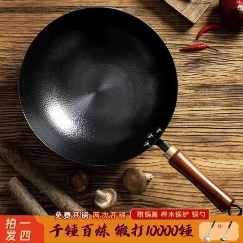 錘紋大師圓底家用鐵鍋章丘傳統炒菜鍋不粘鍋皓月無涂層鍋電磁爐