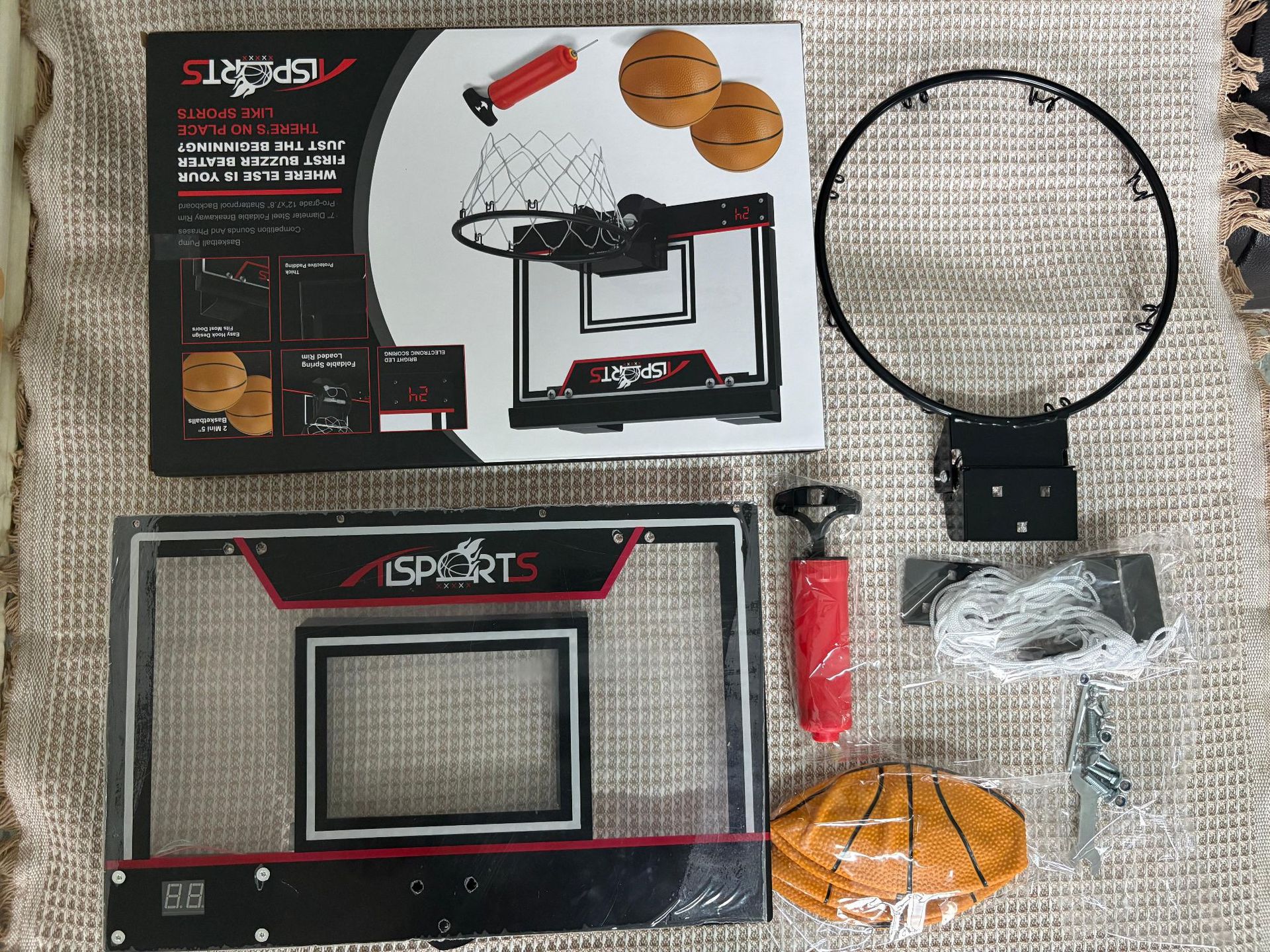 該產品是中性款,彩盒不帶我們的logo,籃球板是亞克力,籃筐是純金屬