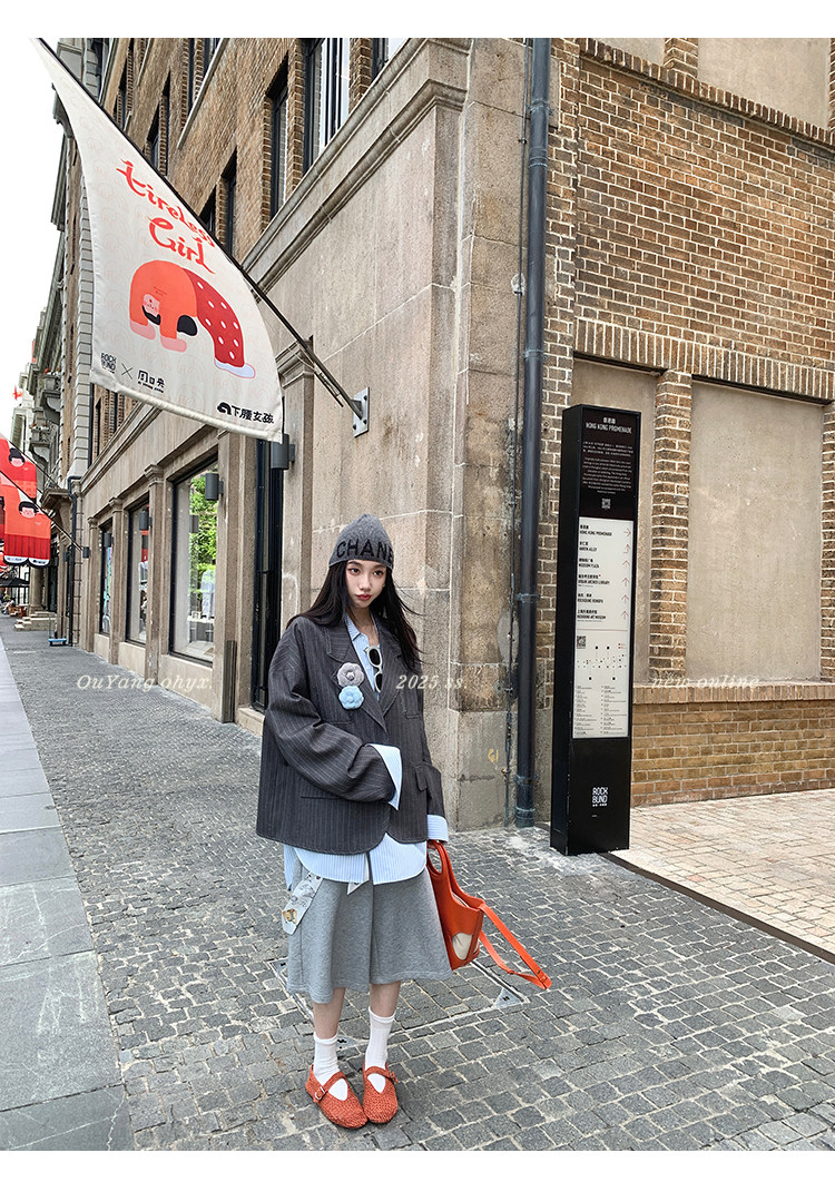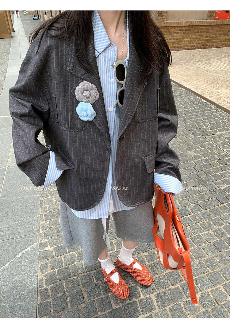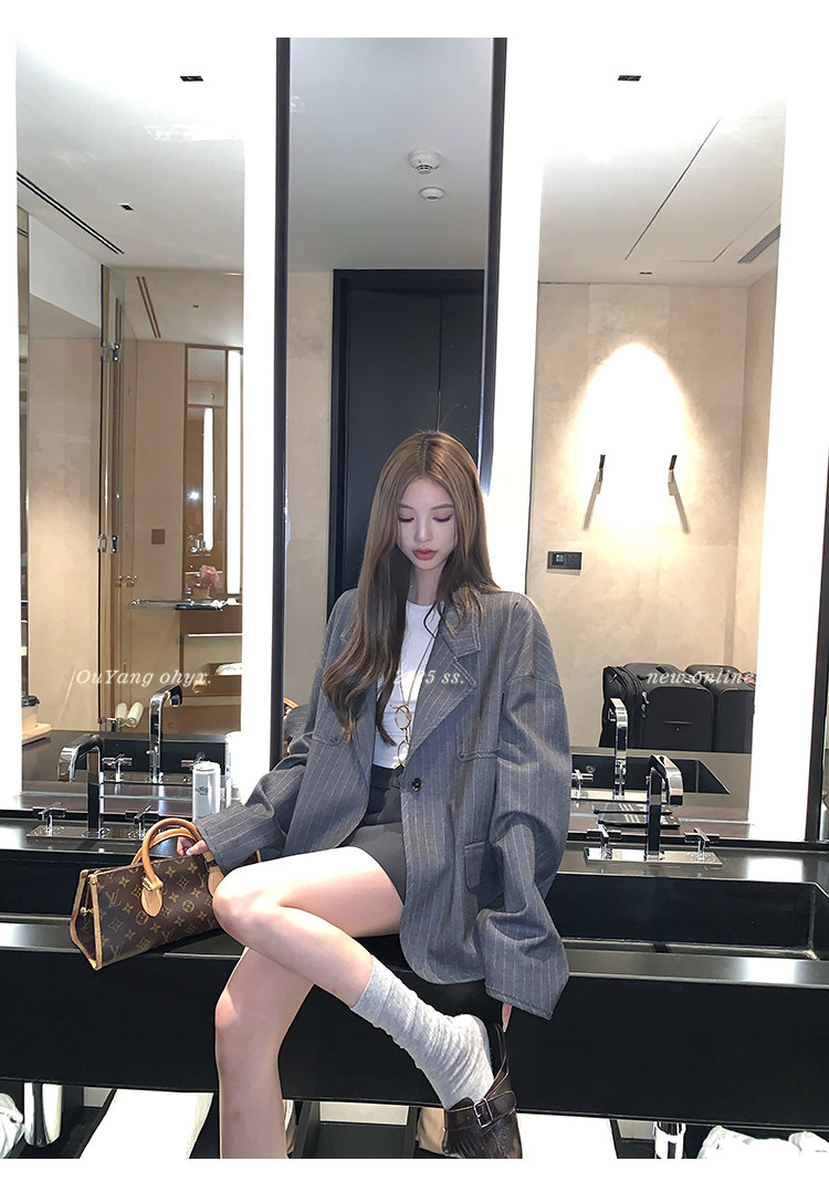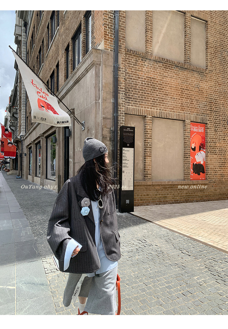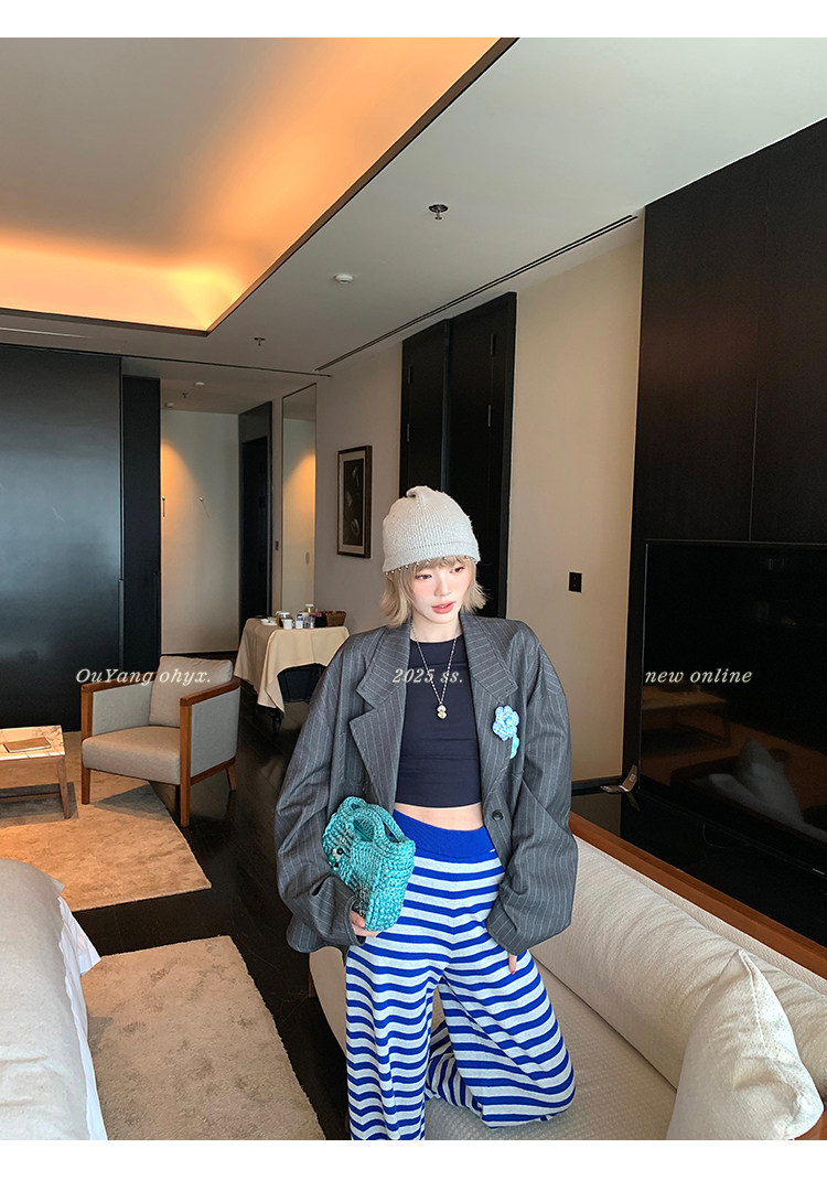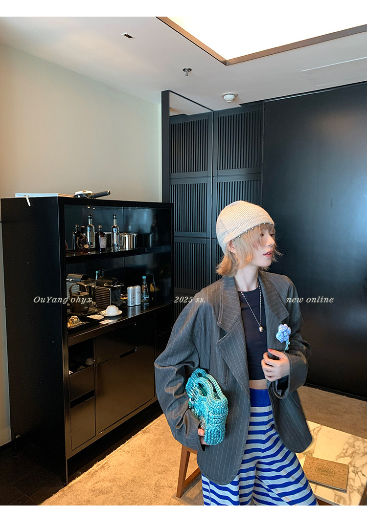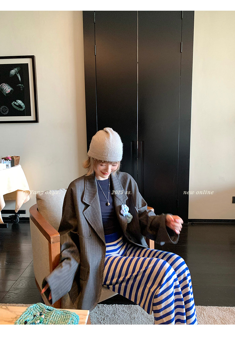 甄選藝術老錢感豎條紋西裝面料