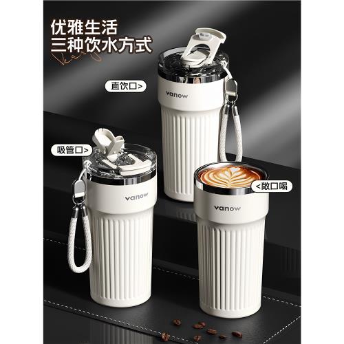 vanow 保溫杯咖啡杯女生男高顏值陶瓷內膽2025新款便攜吸管水杯子