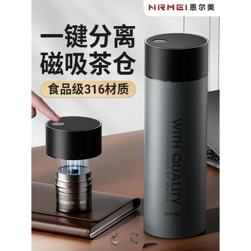 磁吸保溫杯泡茶杯男款316不銹鋼便攜商務辦公高檔磁彈喝茶水杯子