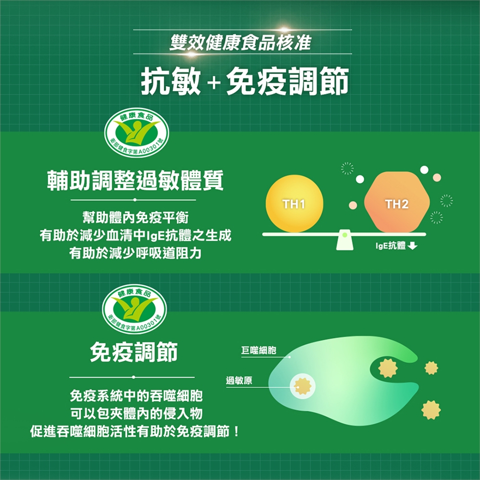 有助於減少血清中總IgE抗體與塵蟎特異性IgE抗體之生成。