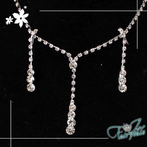 【伊飾童話】閃耀滴鑽*滿鑽白銀鎖骨項鍊/耳環組