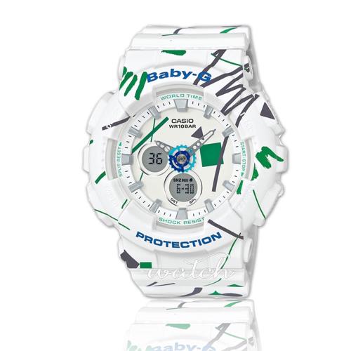 【CASIO卡西歐BABY-G系列】甜美可愛_塗鴉風格_耐衝擊構造_防水_LED燈_女錶(BA-120SC-7A)