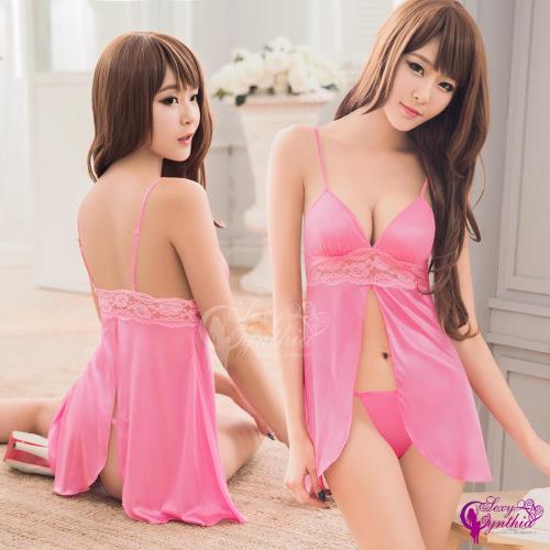 【Sexy Cynthia】性感睡衣 粉紅誘人柔緞二件式前後開襟睡衣