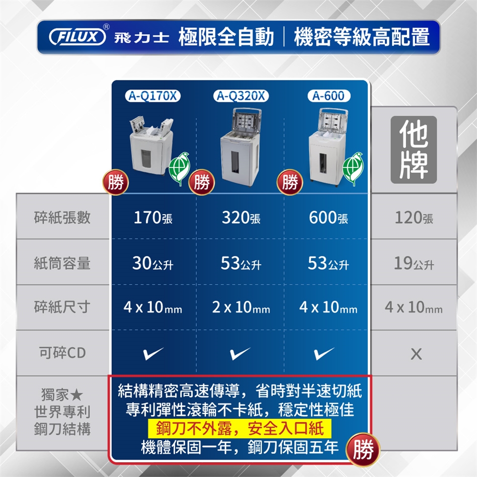 提供個人、多人、多部門的多選擇,支援保密銷毀機密文件與個人安全防止身分盜用的全方位超級功能碎紙機種!