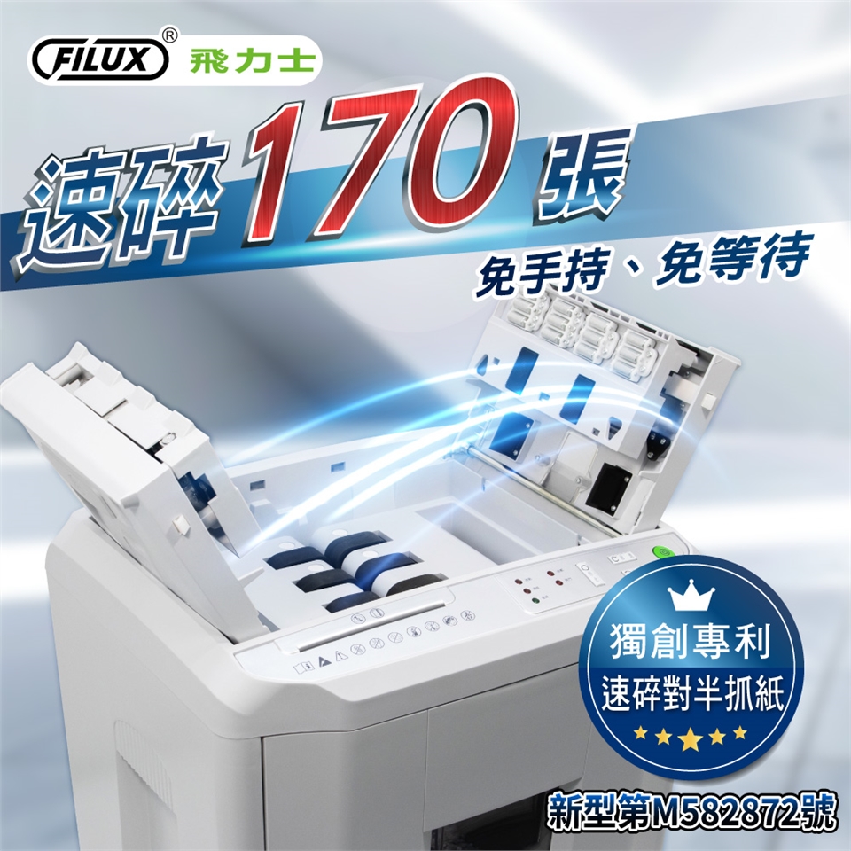 ~自動對半高速進紙,一次速碎170張,免等待馬上走開! 10分鐘自動完成!~