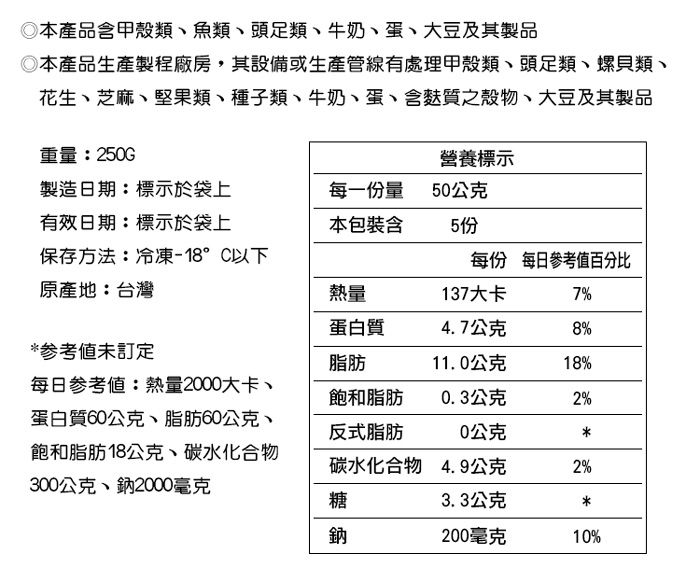 .退貨限制:本商品無提供體驗,食品一經開封不得退換貨,不接受7天鑑賞期退換貨,除非收到商品如有瑕疵或損毀請先第一時間冷凍保存後,並通知系統後台將於2~3天內完成退換貨作業。