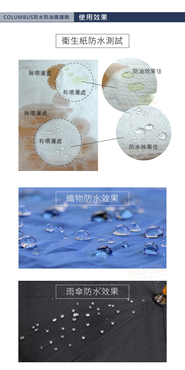 COLUMBUS防水防油噴護劑功能: