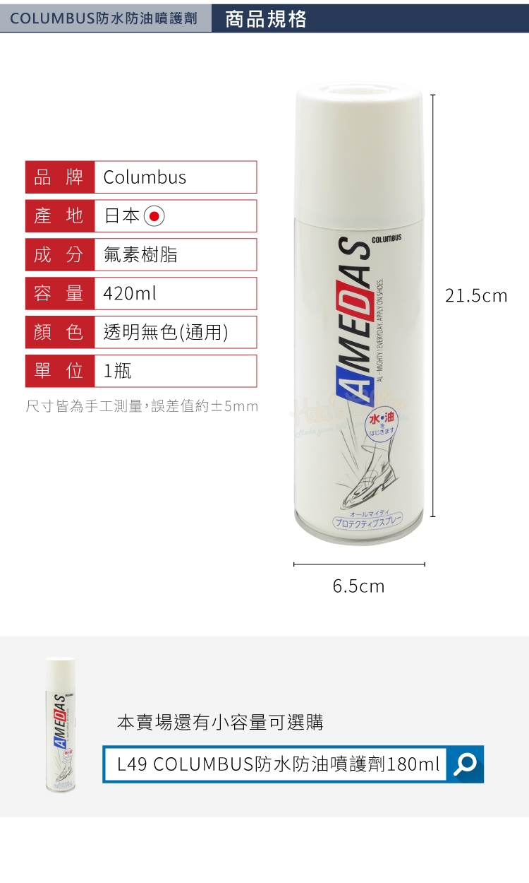 L49 COLUMBUS防水防油噴護劑180ml