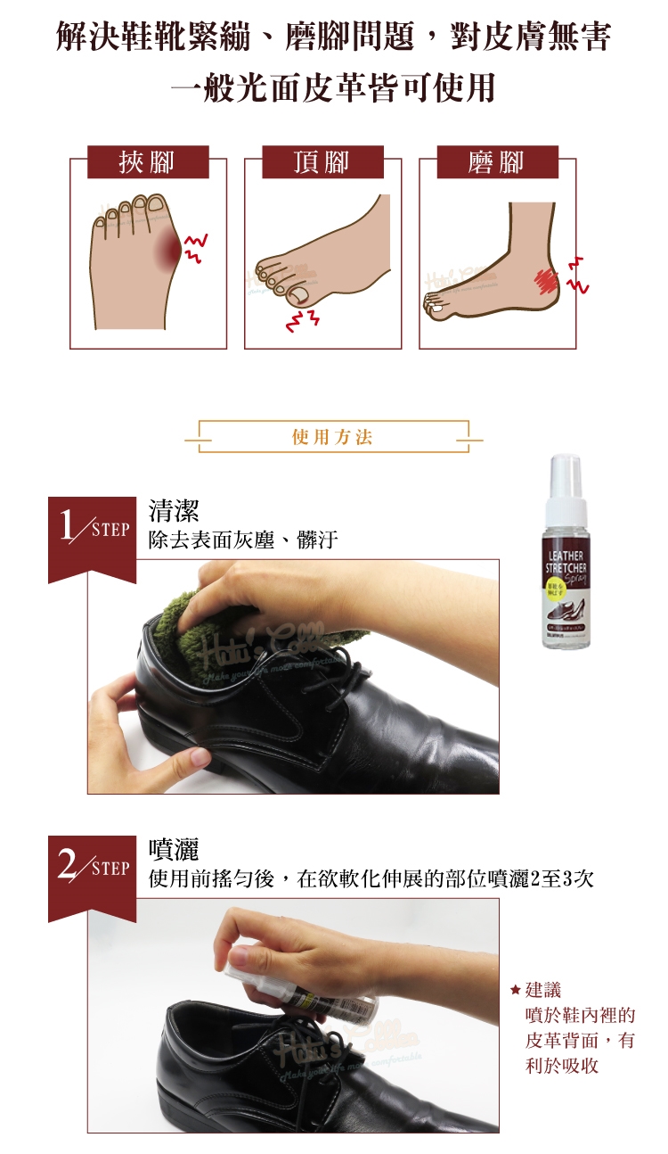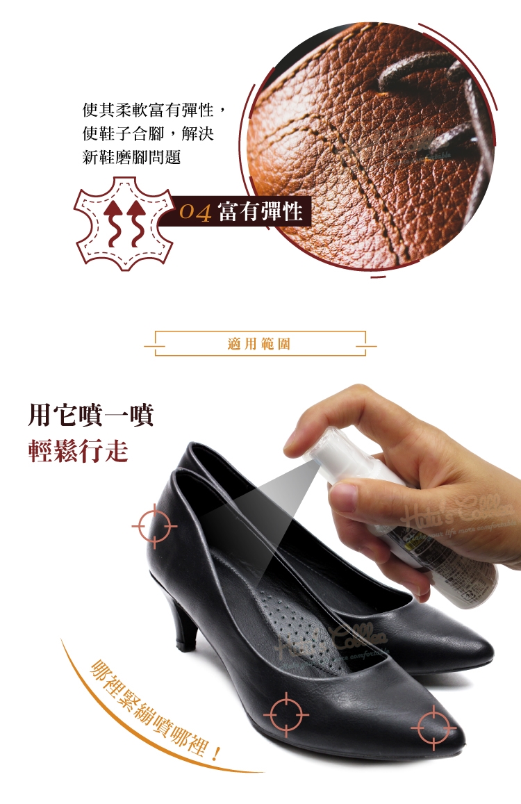 建議噴於鞋內裡的皮革背面,有利於吸收