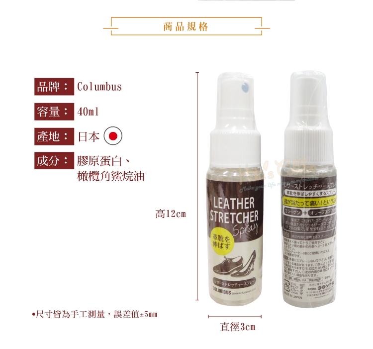 3.擴張皮質:含有膠原蛋白和橄欖角鯊烷的噴霧劑,可使皮革更容易拉伸