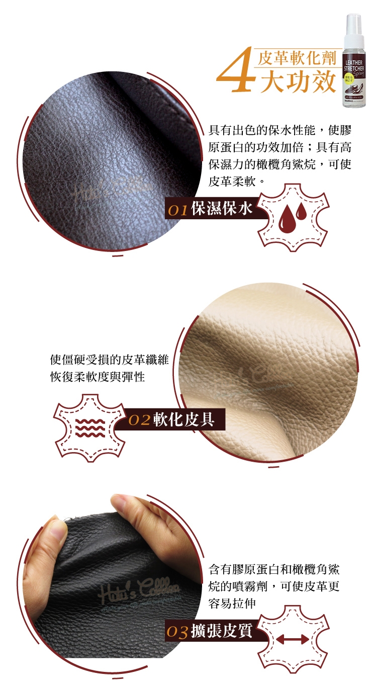 2.軟化皮具:使僵硬受損的皮革纖維恢復柔軟度與彈性