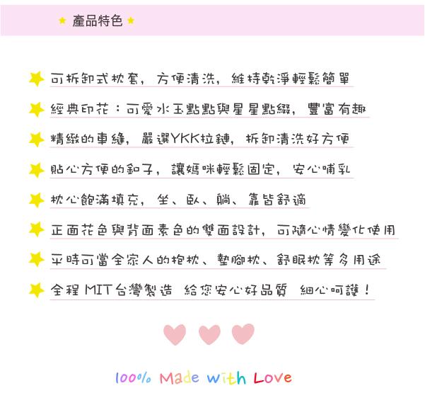 商品詳細介紹 使用方法說明 ★媽咪的哺乳好幫手、孕期腰痠也靠它★雙面花色設計:正面滿版碎花與背面素色設計,可隨心情變化使用~★平時可當全家人的抱枕、墊腳枕或舒眠枕使用 注意事項 請詳閱產品+洗滌須知說明