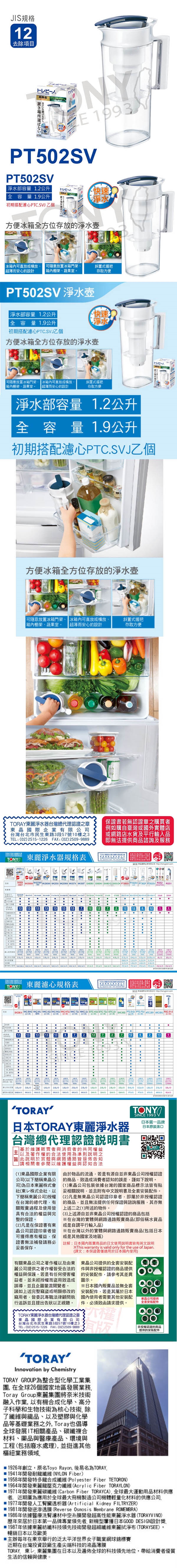 日本東麗TORAY速過濾淨水壺 PT502SV+PTC.SV2J濾心(公司貨)