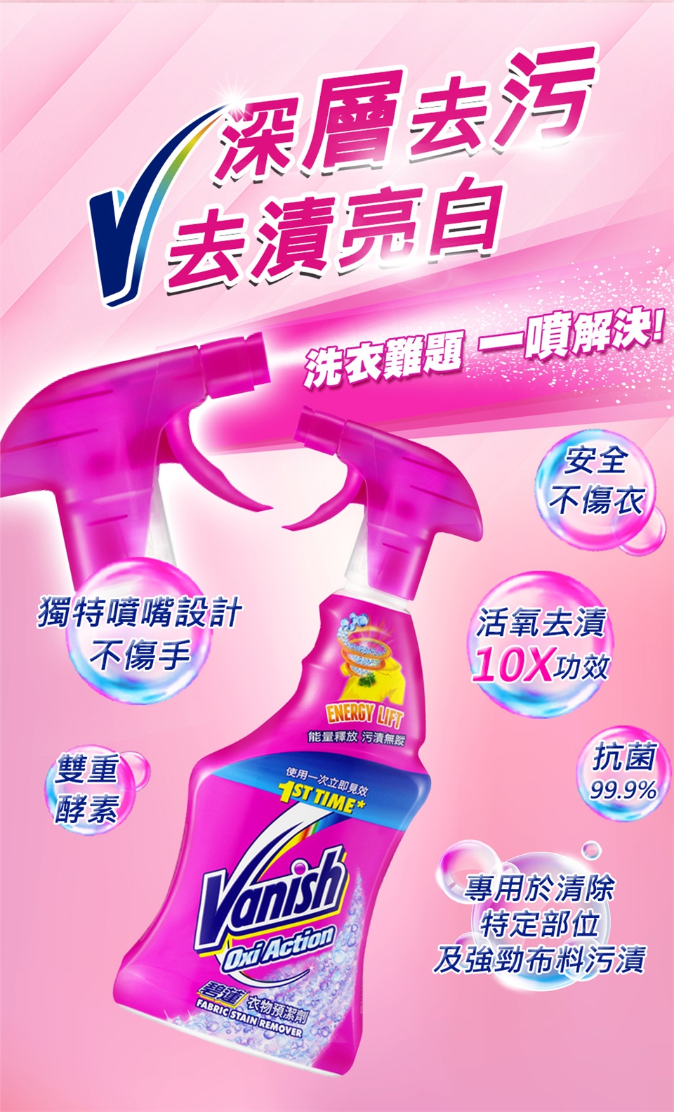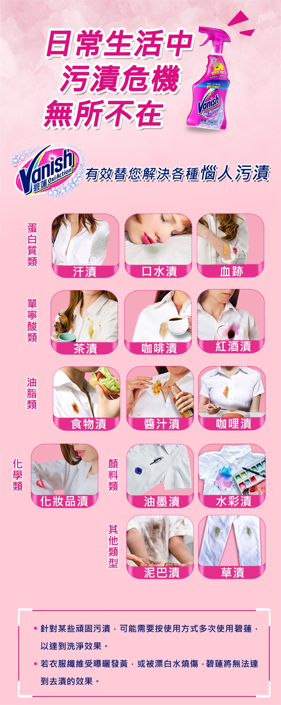4.請勿將附有金屬配件或有防火加工處理的衣物浸泡於去漬液中。