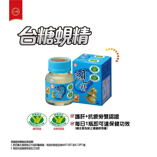 『台糖蜆精』精選花蓮活水水源所養殖無污染之黃金蜆,使用獨家生物科技淬煉,將200顆黃金蜆提煉為一瓶台糖蜆精,每日只需攝取一瓶,即可補充人體所需的營養。