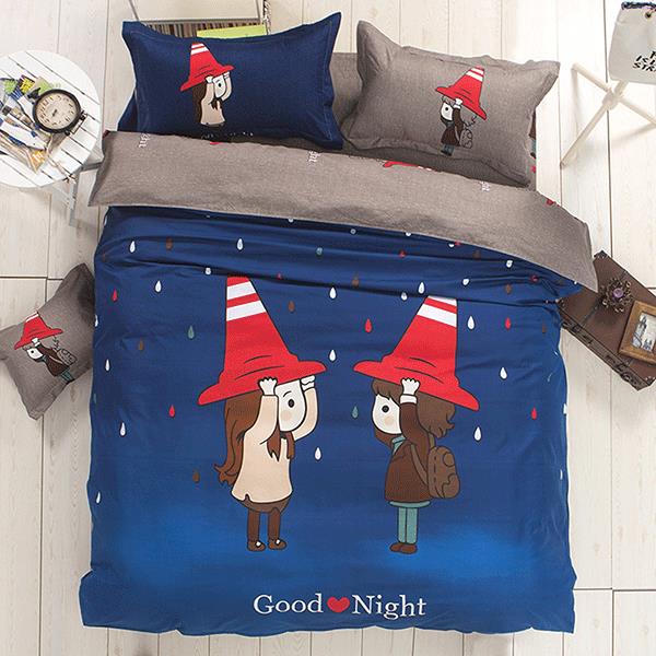 活性印染舒柔棉雙人加大床包兩用被四件組 歡樂拍檔