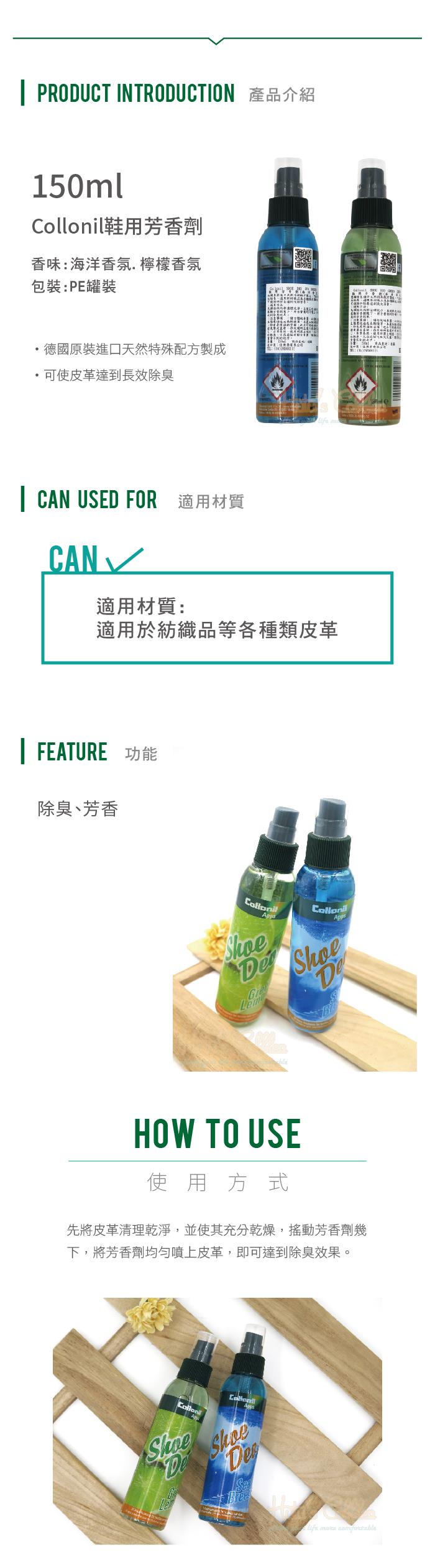 商品詳細介紹 使用方法說明 【使用方法】:先將皮革清理乾淨,並使其充分乾燥,搖動芳香劑幾下,將芳香劑均勻噴上皮革,即可達到除臭效果。【適用材質】: 適用於紡織品等各種類皮革。【功能】:除臭、芳香。 注意事項 無