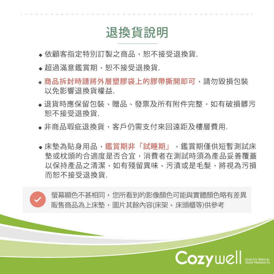‧依顧客指定特別訂製之商品,恕不接受退換貨。