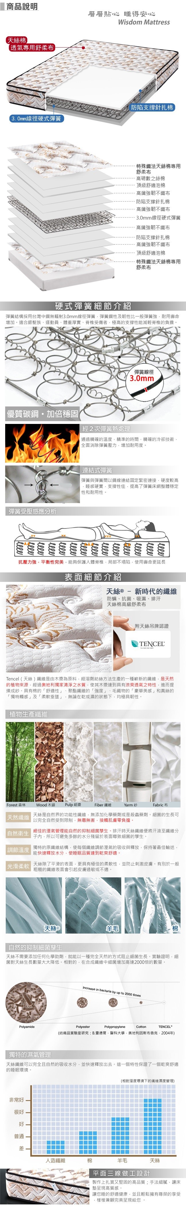 【金鋼床墊】三線防蹣抗菌天絲棉加強護背型3.0硬式彈簧床墊