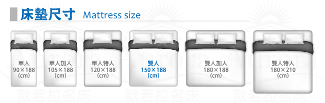 7.床墊為軟性填充產品,使用後若有輕微人體凹痕在2.5cm以下範圍乃正常現象,並不在保固範圍內且不影響彈簧結構,請安心使用。請勿在床墊上站立、跳躍或是長期坐在床墊邊緣。