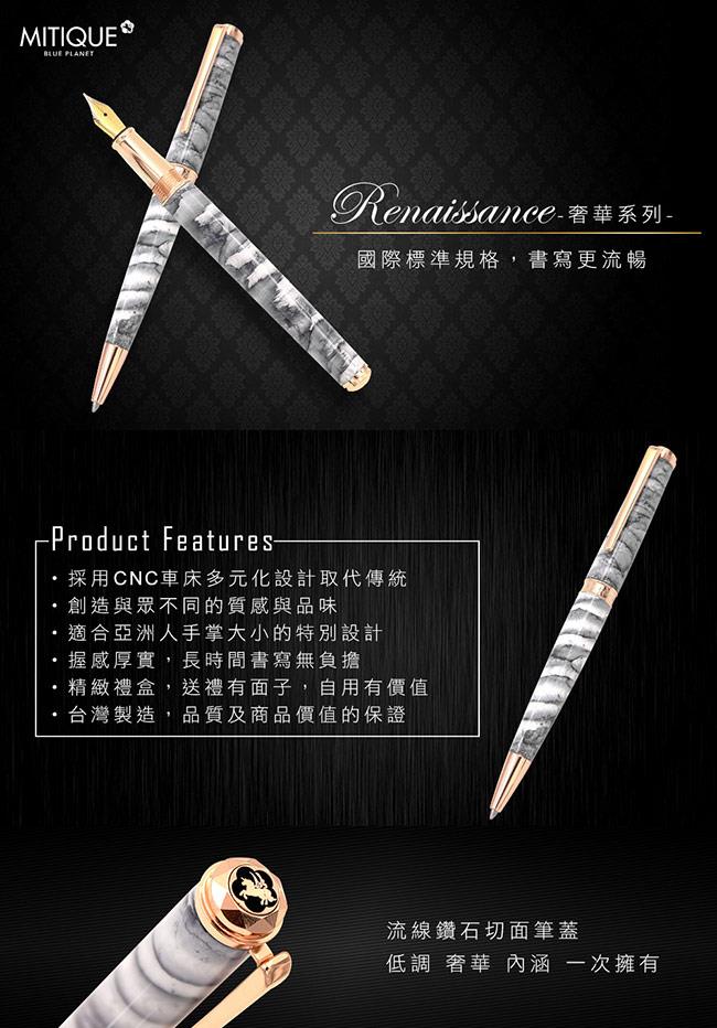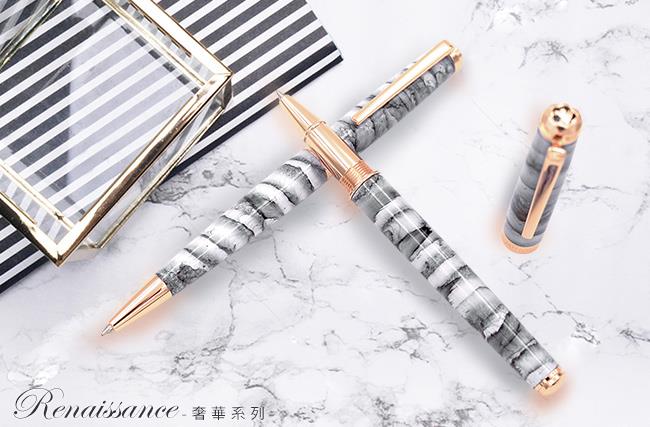 MITIQUE美締克 Renaissance 奢華系列 大理石紋玫瑰金夾原子筆