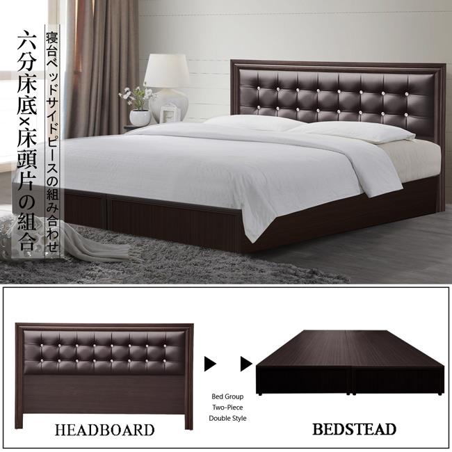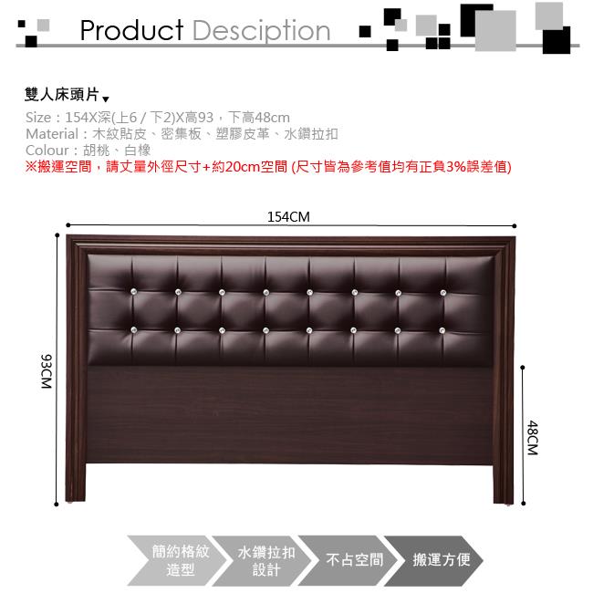 【HOME MALL-西施美鑽】雙人5尺床頭片+六分床底(2色)- 簡約格紋釘釦皮面+水鑽點綴造型結合木質設計,皮紋採用釘釦式造形設計,立體性十足;皮面結合薄式木製框架,展現獨特高質感臥室空間;床頭片造形,特別適合空間狹小居家使用;此款床底採用六分板材質,耐用度升級,採用F3等級低甲醛3分木製床底,不易有甲醛味,健康安全,且兩片式設計,容易搬運移動,商品全程均在台灣製造,品質有保障。共有『胡桃』、『白橡』2款色系可供選擇。