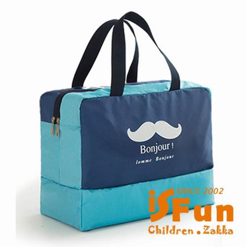 iSFun 乾濕分離 防水運動旅行袋包 藍