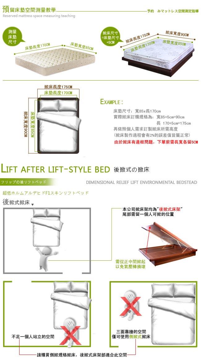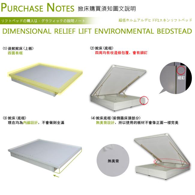 ◎掀床底為F3低甲醛木材,安心保證,不易有甲醛味