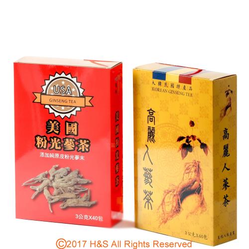 《瀚軒》精選韓國高麗人蔘茶+上選美國粉光蔘茶 (3g*50包)各1盒