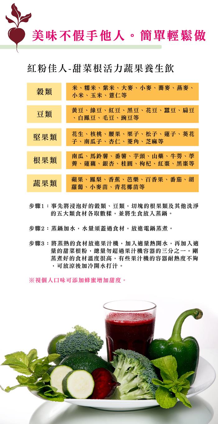 直接以冷水沖泡飲用,或與其他營養穀粉調配成精力湯或甜菜根植物奶、豆奶等,亦可在做麵條及麵包、饅頭時添加。
