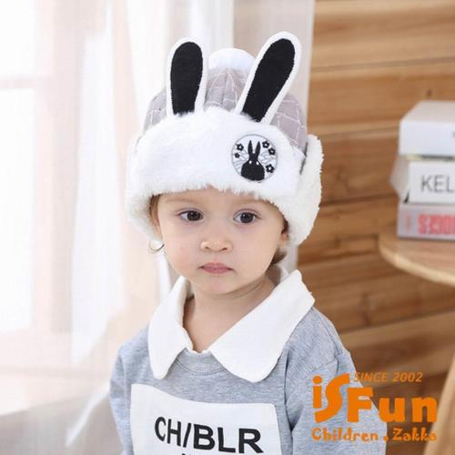iSFun 兔子隊長 刷毛保暖固定護耳帽 灰