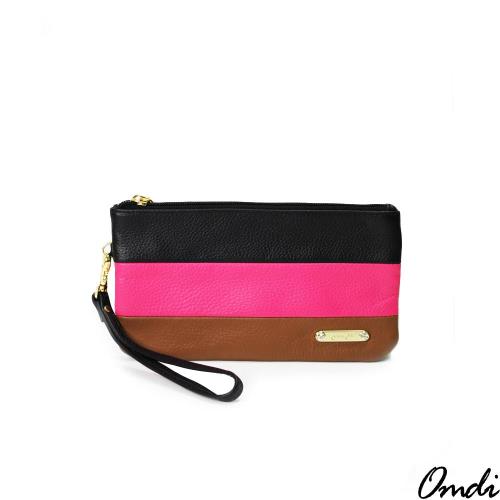 【Omdi】拚色多功能手拿包-咖啡色/綠色