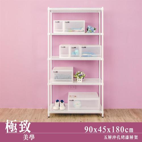 dayneeds 極致美學 90x45x180公分五層沖孔烤白收納架