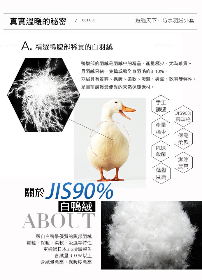 遊遍天下嚴選台灣抗磨擦、抗撕裂及超透氣等功能性布料,特選台灣高規格JIS90%羽絨,極緻輕暖;