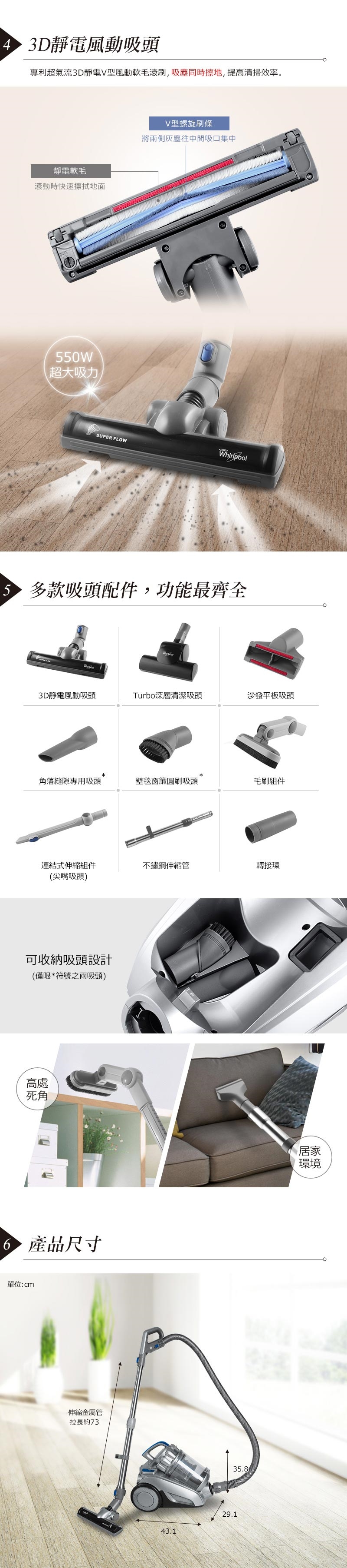 Whirlpool惠而浦 550W多氣旋無集塵袋吸塵器 VCK4007
