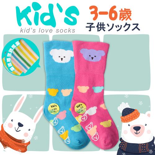 【老船長】寬口棉質熊熊止滑童襪-6雙入(不挑色)