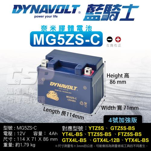 (藍騎士) MG5ZS-C 同YUASA湯淺YTZ5S / HONDA MSX 機車電瓶 重機 電瓶更換 電瓶推薦 DYNAVOLT 更換電池