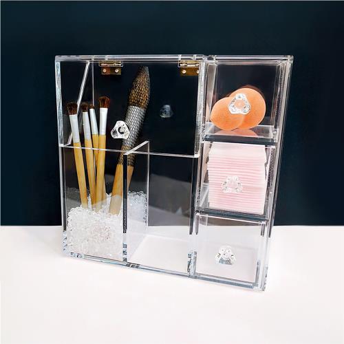 ◎ 透明壓克力帶蓋防塵彩妝收納盒(YA-03)