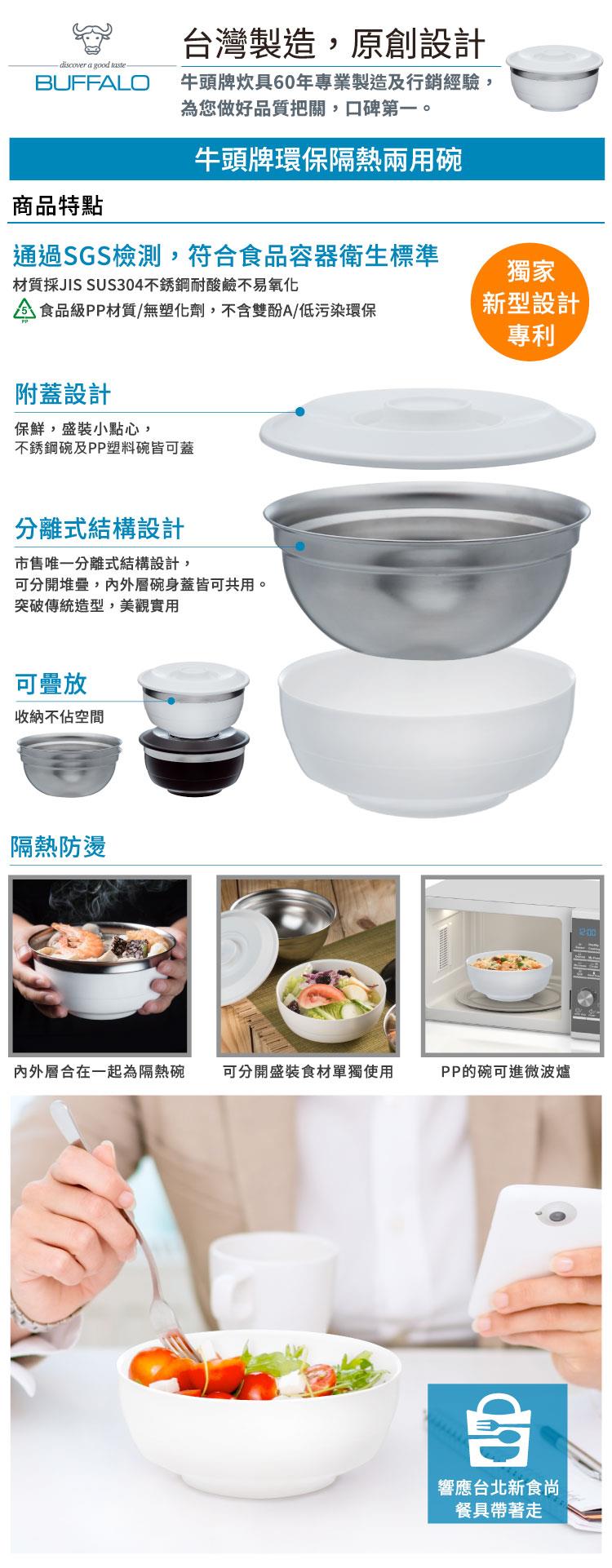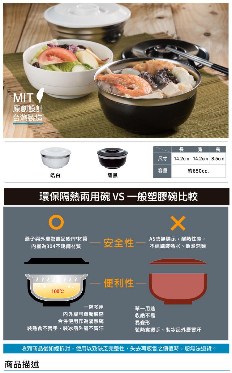 3.外層可單獨使用盛裝冷食, 內層單獨盛裝冷/熱食, 或合併使用作為隔熱碗,