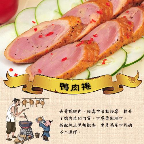 去骨鴨腿肉,經真空滾動按摩,提升了鴨肉捲的肉質,口感柔嫩順口,