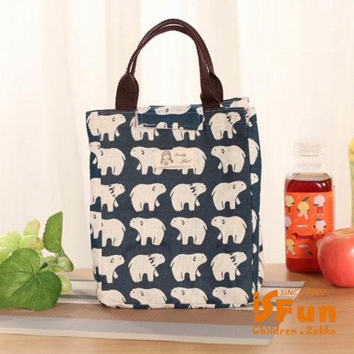 iSFun 動物漫遊 亞麻保溫保冷便當袋 3色可選