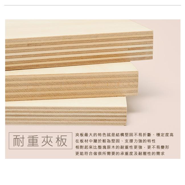 床板採用耐重四分夾板,整體穩定度及耐重性都比整塊原木更高,更加安全!