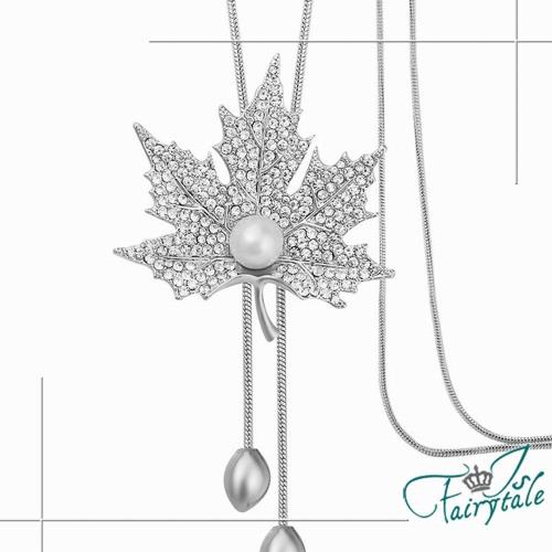 伊飾童話 珍珠楓葉 滿鑽活動流蘇長鍊 銀