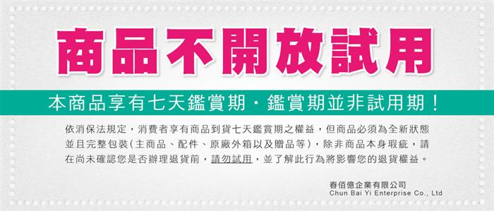 ※本產品因一經使用即需耗電,屬消耗性用品,本產品不提供試用一經加水試用