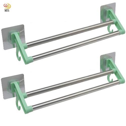 月陽37cm無痕貼雙桿不鏽鋼掛物架毛巾架置物架超值2入(D37092)